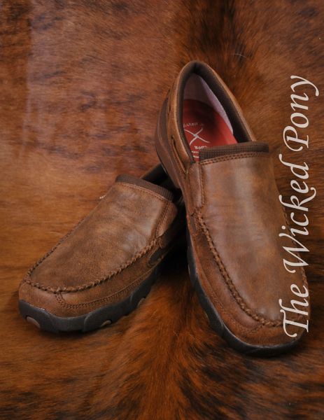 Men S Twisted X Brown Slip On Driving Mocs The Wicked
