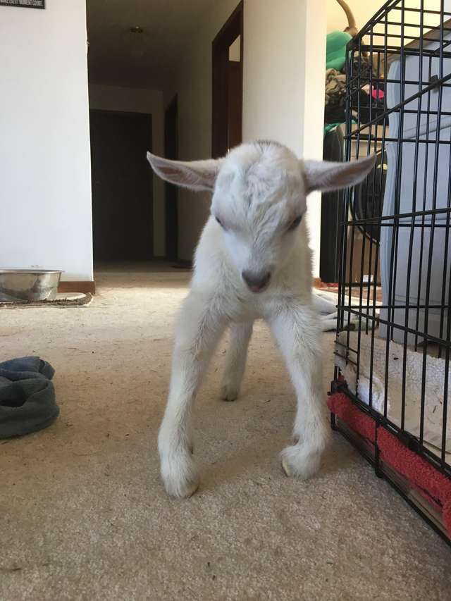 Nova Scotia Retriever Cuddles Rescued Baby Goat On Sofa At